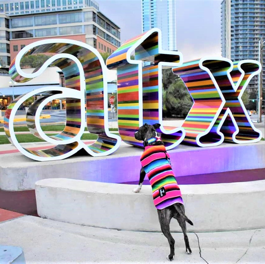 I first came across Xolo Sarapes when a differently-abled dog Instagram account shared Xolo's "adopt me" sarapes being donated to support of dogs in need in the ATX area and knew I had to support this cause! What I didn't realize at the time was how PERFECT the sarape would be for my pup. My German Shepherd mix, Scott, is partially paralyzed and uses a wheelchair, and his blue sarape fits PERFECTLY under his wheelchair harness. The quality and craftsmanship are unmatched compared to any of Scott's other pieces of clothing. It holds up AMAZINGLY to all his wear and tear, and it does well in the washer inside a delicates bag washed on the delicate cycle. It doesn't take very long to hang dry either. Plus the colors in the blue sarape complement his coat colors perfectly, and he gets compliments everywhere he goes when he wears it! We even have a matching collar bandana and it's probably our favorite of his accessories bc it's the perfect size for him, slides onto his collar so easy, and it looks great on him even though with his wonky spine near his shoulders! We loved our sarape so much we bought our friends' Chihuahua one of the fleece lined sarapes as a gift bc he's always cold and he loves it!!