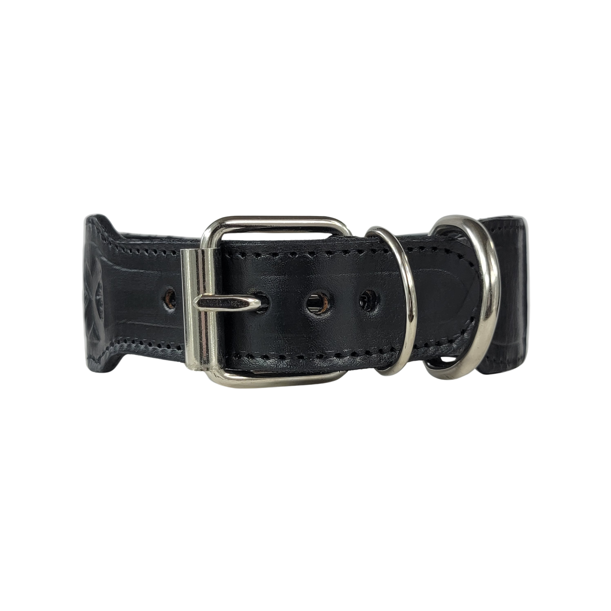MEDIUM PREMIUM BLACK LEATHER CHIAPAS PATTERN COLLARS